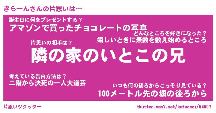 | 男性向けラノベタイトル風あだ名 | 『きらーんの憂鬱』 |