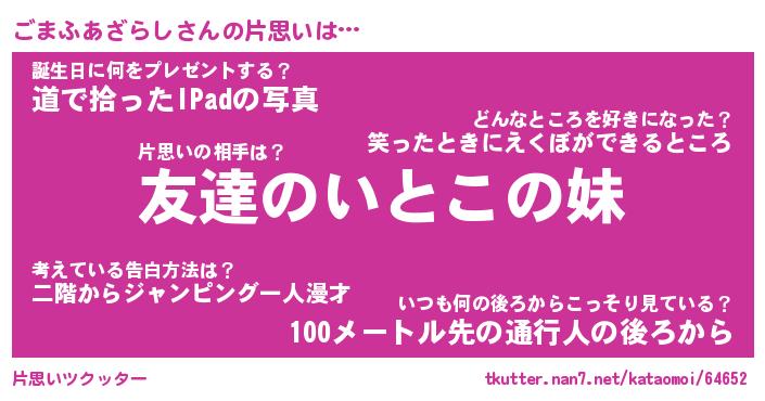 | ヘコむあだ名 | 『ごまもー』『牛乳』『ごまを』 |