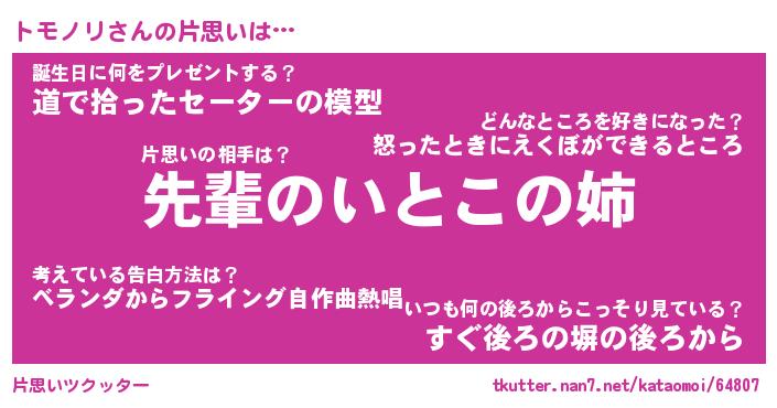 | 胡散臭い通販商品みたいなあだ名 | 『モテモテ間違いなし霊験あらたかなお札…その名も「トモノリ」』 |
