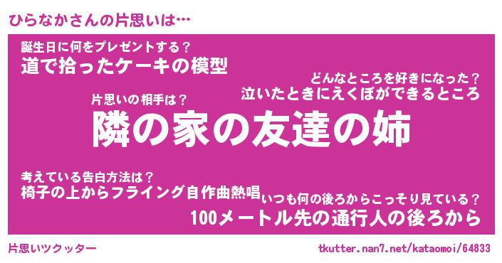 | 女子向けラノベタイトル風あだ名 | 『(仮)ひらなかのやんごとなき事情』 |