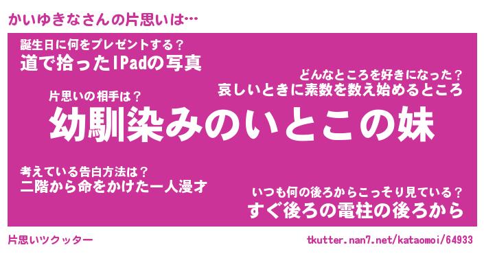 | 男性向けラノベタイトル風あだ名 | 『かいゆきなの憂鬱』 |