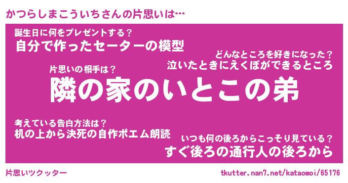 | 男性向けラノベタイトル風あだ名 | 『かつらしまこういちの憂鬱』 |