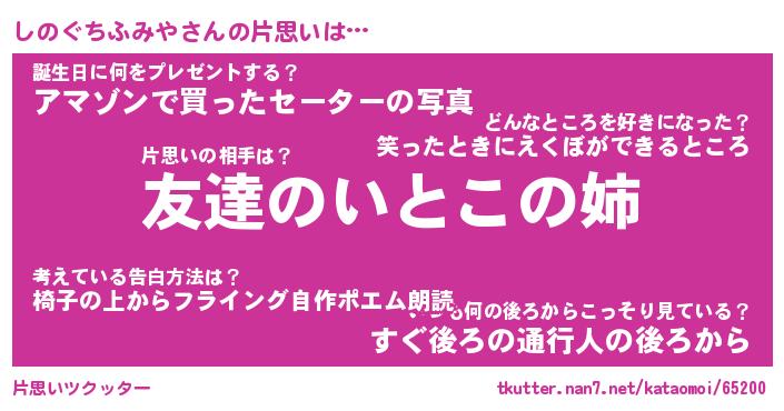 | ヘコむあだ名 | 『しのにゅー』『酢こんぶ』 |