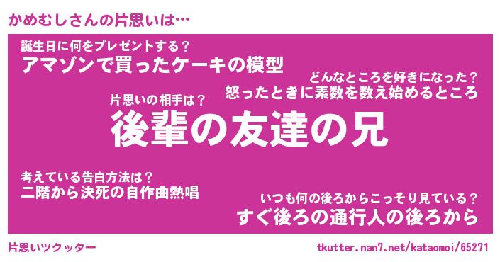 | ファンタジー風あだ名 | 『カメフェル』『エターナルカメムシー』 |