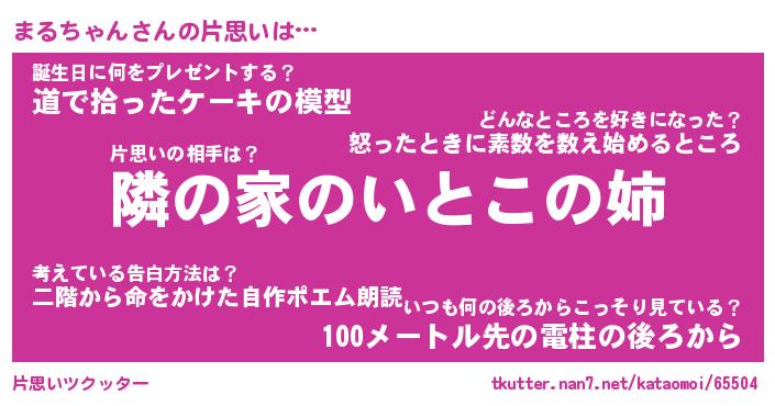 | 男性向けラノベタイトル風あだ名 | 『まるちゃんの憂鬱』 |