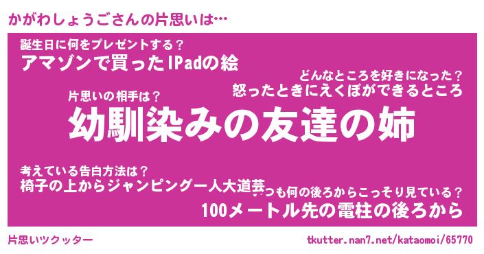 | 胡散臭い通販商品みたいなあだ名 | 『必ず成功する霊験あらたかなお札…その名も「かがわしょうご」』 |