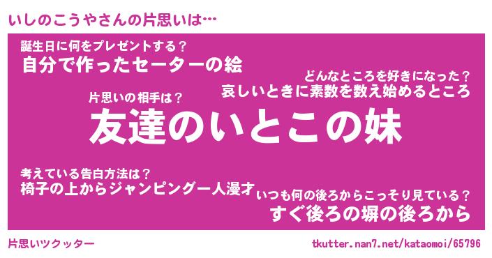 | ヒーロー風カッコイイあだ名 | 『スーパーイシノコウヤ』『炎刃騎士イシ』 |