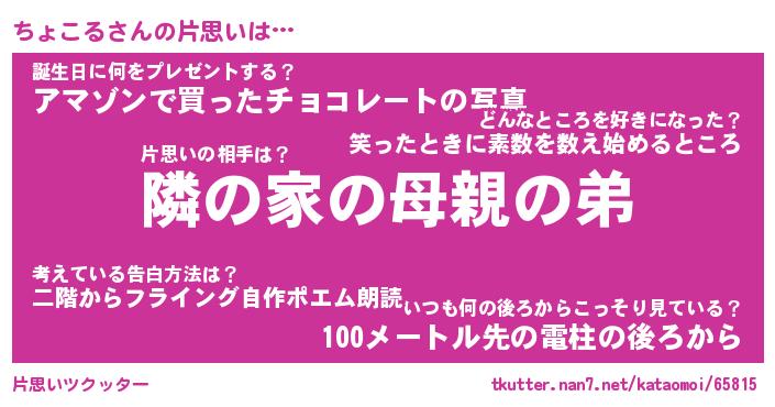 | 胡散臭い通販商品みたいなあだ名 | 『必ず成功するブレスレット…その名も「ちょこる」』 |