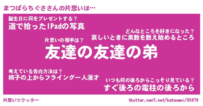 | 伝説のあだ名 | 『封印されしスナイパーまつばらちぐさ』 |