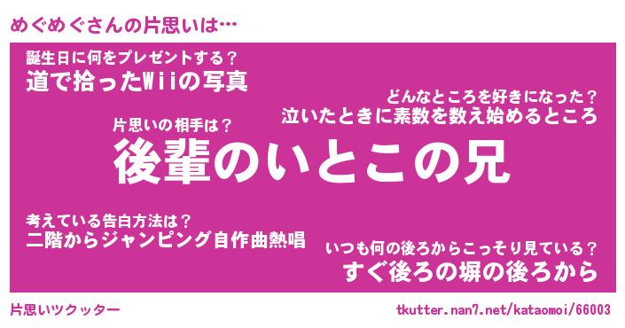 | 胡散臭い通販商品みたいなあだ名 | 『モテモテ間違いなし霊験あらたかなお札…その名も「めぐめぐ」』 |