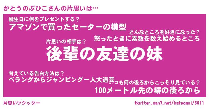 | ヘコむあだ名 | 『かとっふぃ~』『つくし』 |