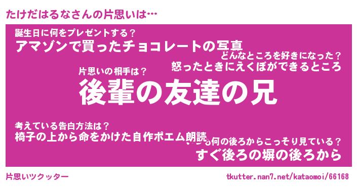 | ヘコむあだ名 | 『たけっふぃ~』『豆乳』『たけお』 |