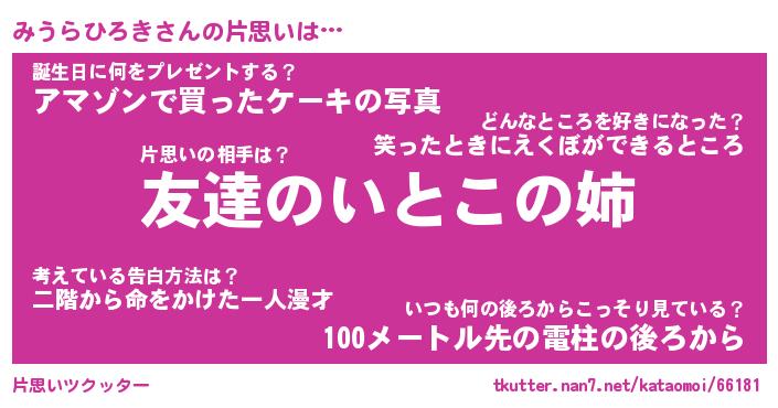 | 伝説のあだ名 | 『封印されしスナイパーみうらひろき』 |