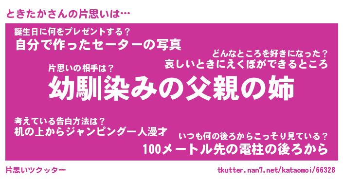 | ファンタジー風あだ名 | 『トキフェル』『エターナルトキタカー』 |
