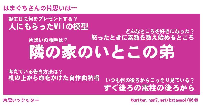 | 胡散臭い通販商品みたいなあだ名 | 『モテモテ間違いなし水晶球…その名も「はまぐち」』 |