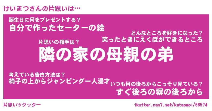 | ヘコむあだ名 | 『けいにー』『つくし』『けい太郎』 |