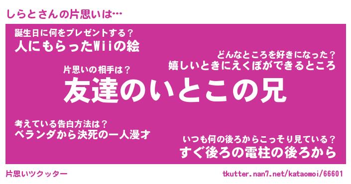 | 意味不明あだ名 | 『ペロリンしらと』『しらとフォーエバー』 |