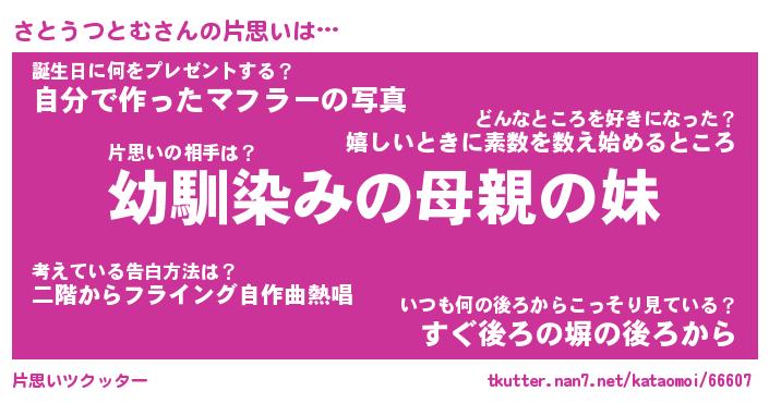 | 男性向けラノベタイトル風あだ名 | 『さとうつとむの憂鬱』 |