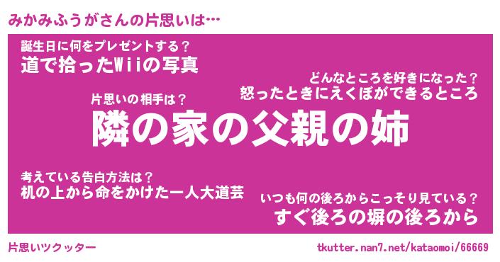 | 伝説のあだ名 | 『伝説の竜騎士みかみふうが』 |