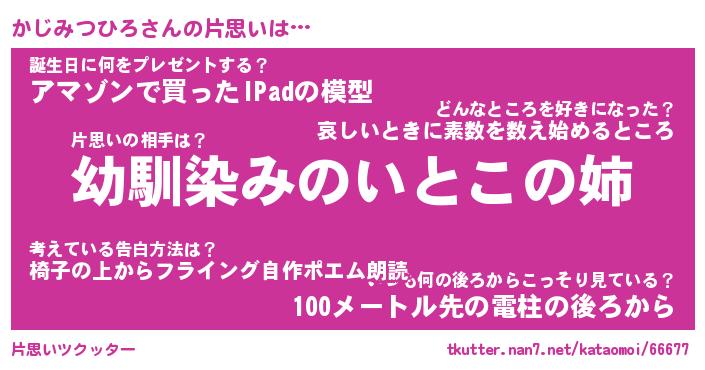 | 男性向けラノベタイトル風あだ名 | 『かじみつひろの憂鬱』 |