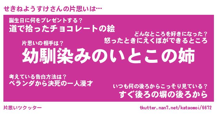 | 胡散臭い通販商品みたいなあだ名 | 『必ず成功する水晶球…その名も「せきねようすけ」』 |