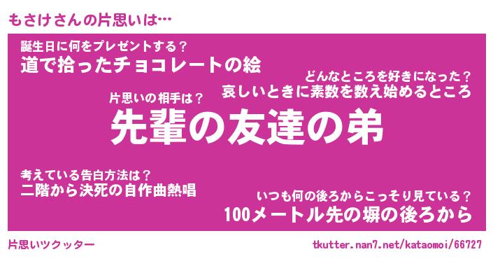 | ヘコむあだ名 | 『もさもー』『牛乳』『もさっぺ』 |