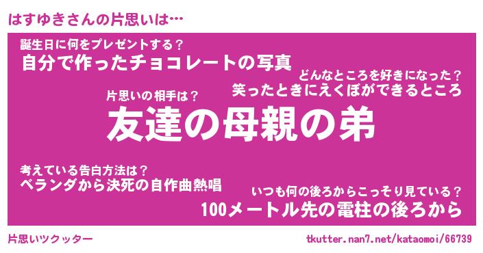 | 胡散臭い通販商品みたいなあだ名 | 『億万長者になれるブレスレット…その名も「はすゆき」』 |