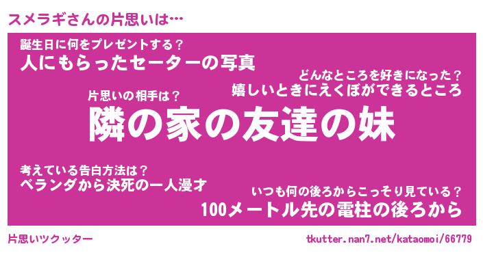 | ヒーロー風カッコイイあだ名 | 『スーパースメラギ』『魔戒騎士スメ』 |