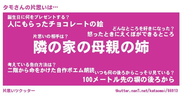 | ポケモン風あだ名 | 『タモチュウ』『タモダネ』『ヒタモ』 |