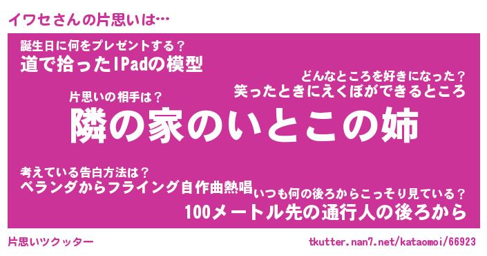 | ピコ太郎風あだ名 | 『イコ六郎』『ピイ五郎』『イワ八郎』 |