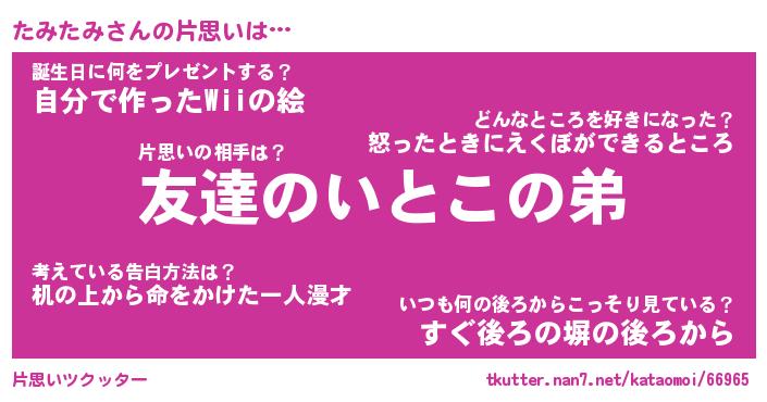 | ヘコむあだ名 | 『たみにゅー』『牛乳』『たみっぺ』 |