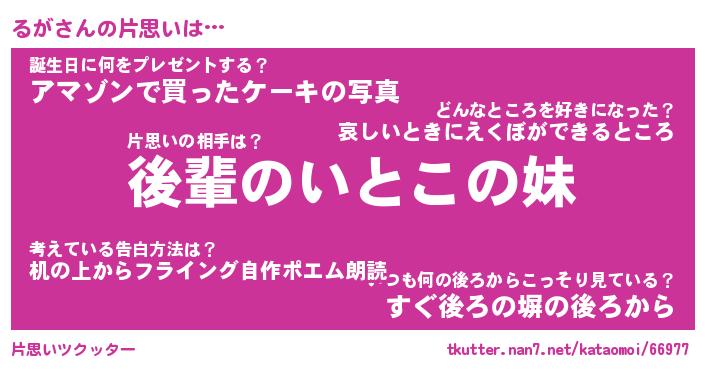 | ヘコむあだ名 | 『るがにゅー』『なまこ酢』 |