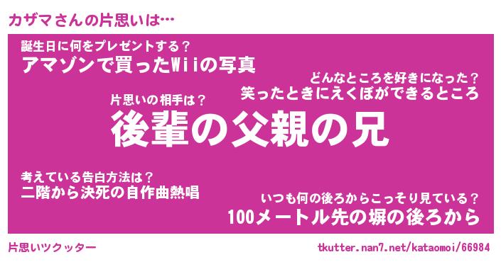 | ヘコむあだ名 | 『カザにゅー』『なまこ酢』『カザを』 |