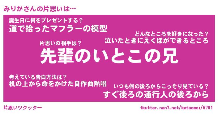 | 男性向けラノベタイトル風あだ名 | 『みりかの憂鬱』 |