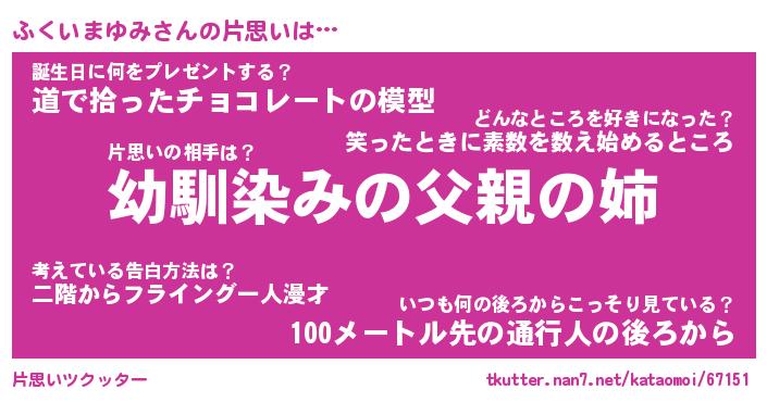 | 男性向けラノベタイトル風あだ名 | 『ふくいまゆみの憂鬱』 |