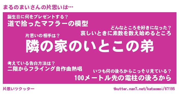 | 男性向けラノベタイトル風あだ名 | 『まるのまいの憂鬱』 |
