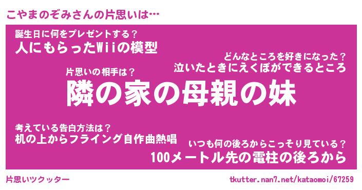 | 胡散臭い通販商品みたいなあだ名 | 『必ず成功するブレスレット…その名も「こやまのぞみ」』 |