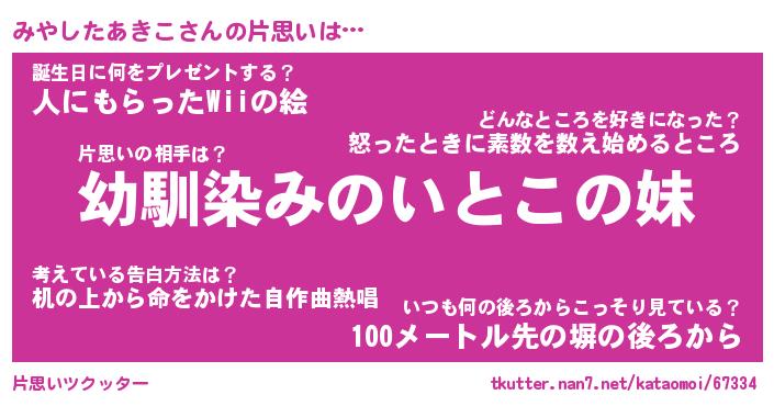 | 男性向けラノベタイトル風あだ名 | 『みやしたあきこの憂鬱』 |