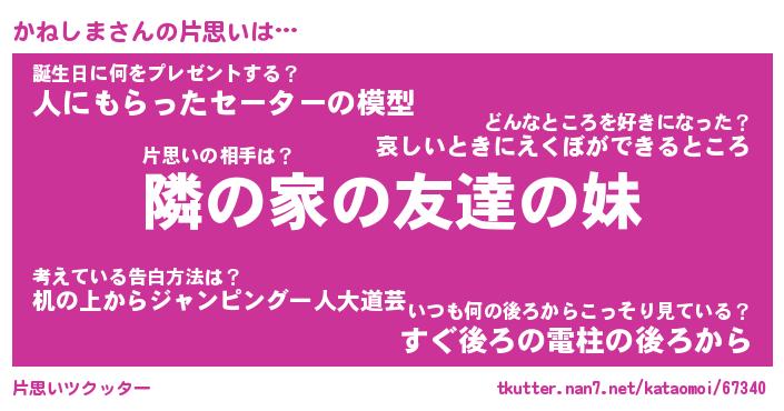 | 意味不明あだ名 | 『ペロリンかねしま』『永久保存かねしま』 |