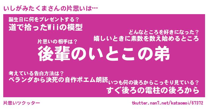 | ツイッター | いしがみたくまさんのツイッターID『namakemono_kun』 |