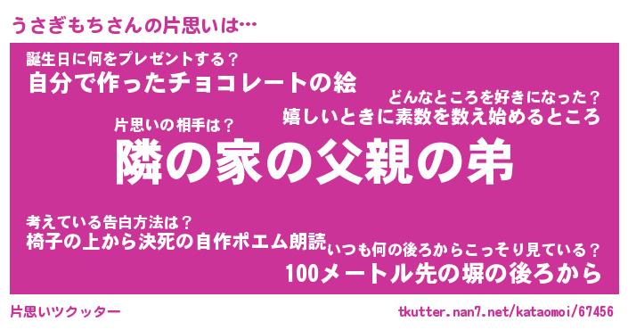| ポケモン風あだ名 | 『ウサチュウ』『ウサギダネ』 |