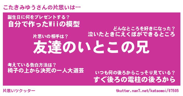 | ヒーロー風カッコイイあだ名 | 『スーパーコタキミユウ』『天弓騎士コタ』 |