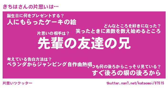 | 男性向けラノベタイトル風あだ名 | 『きちはの憂鬱』 |