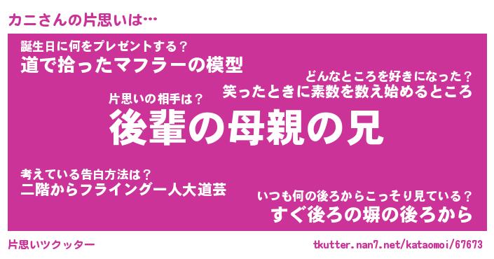 | ヘコむあだ名 | 『カニにー』『つくし』『カニ太郎』 |