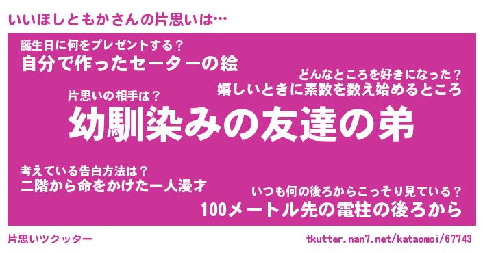 | 男性向けラノベタイトル風あだ名 | 『いいほしともかの憂鬱』 |