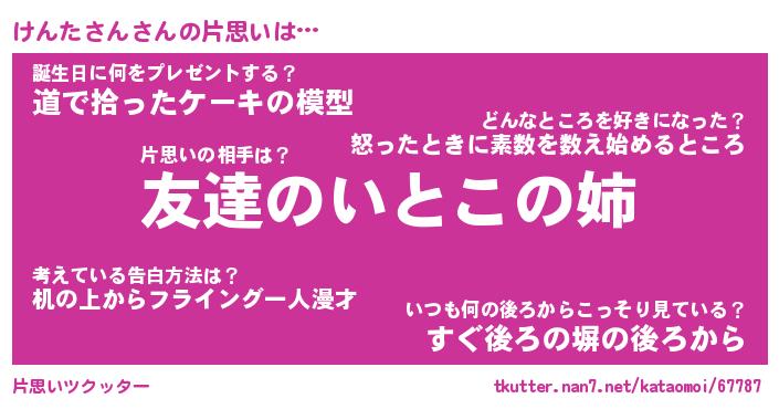 | ファンタジー風あだ名 | 『ケンフェル』『エターナルケンタサンー』 |