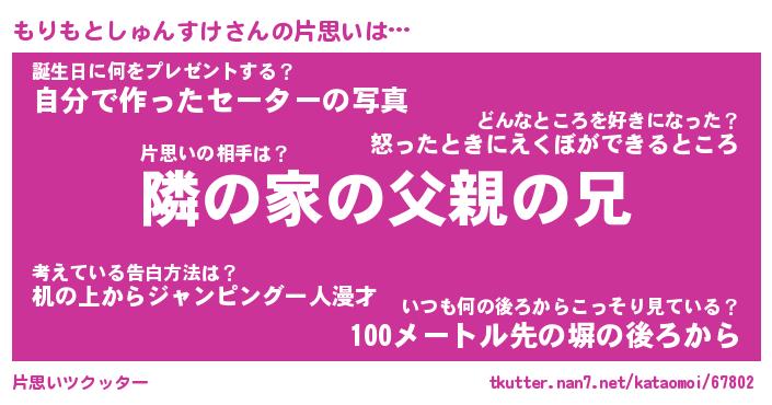 | 胡散臭い通販商品みたいなあだ名 | 『モテモテ間違いなし水晶球…その名も「もりもとしゅんすけ」』 |