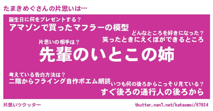 | ファンタジー風あだ名 | 『タマフェル』『エターナルタマキメグー』 |