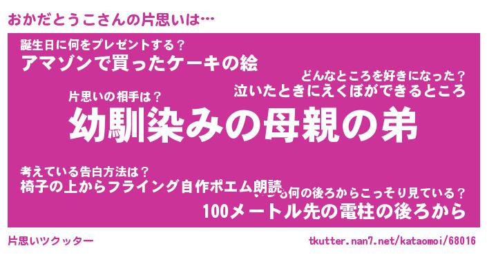 | 男性向けラノベタイトル風あだ名 | 『おかだとうこの憂鬱』 |