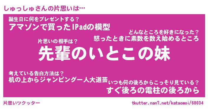 | ヘコむあだ名 | 『しゅもー』『なまこ酢』『しゅお』 |